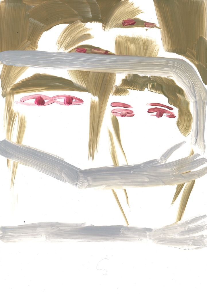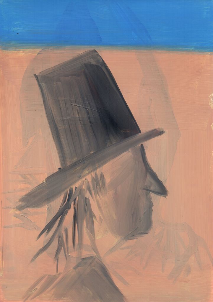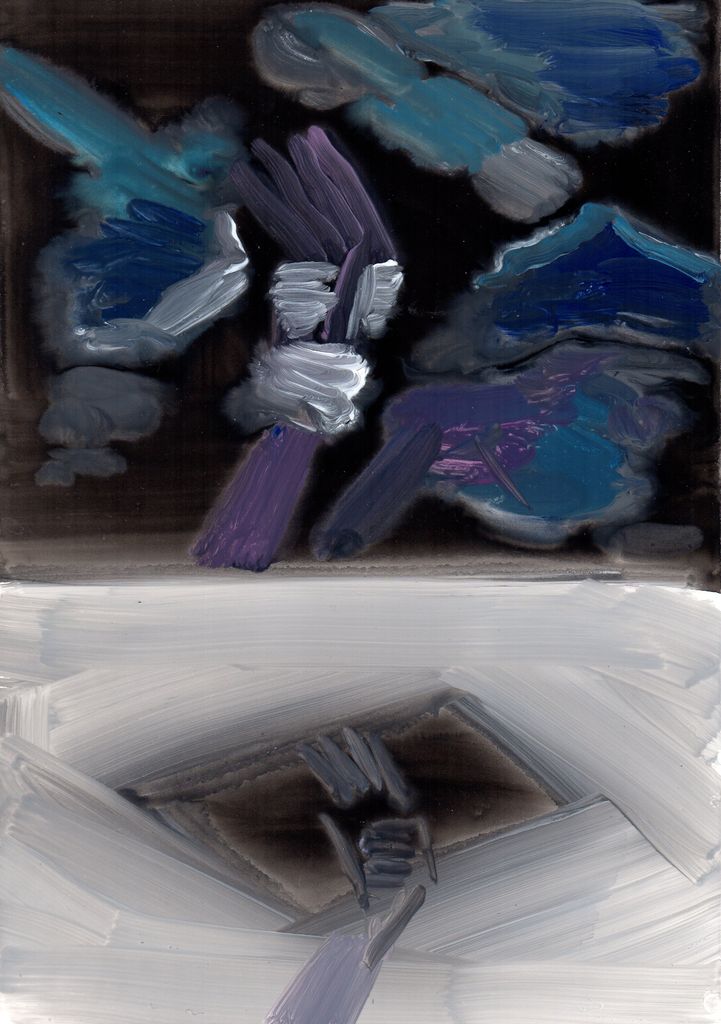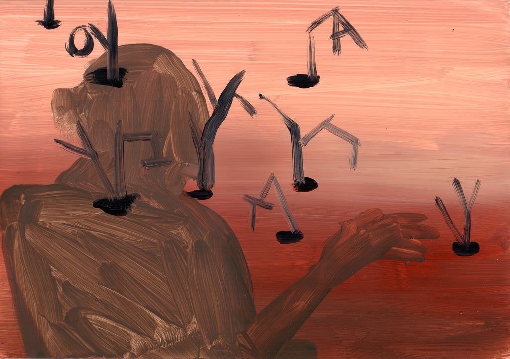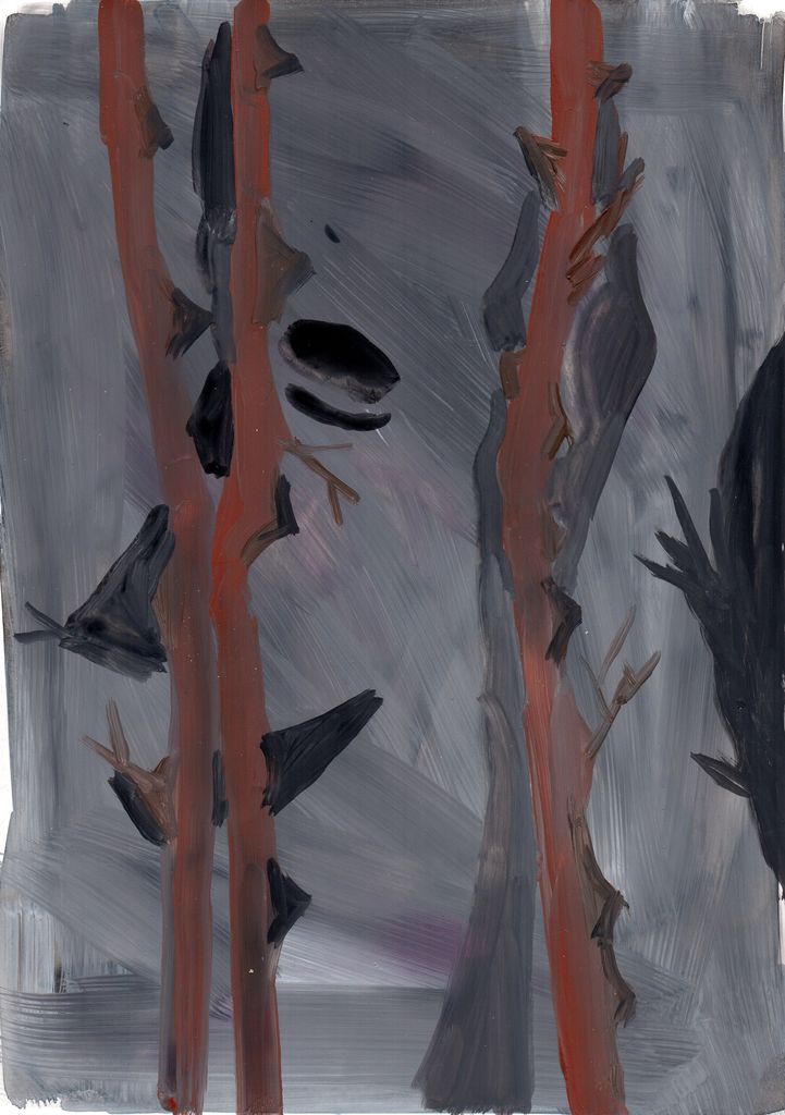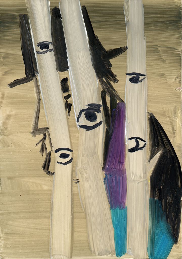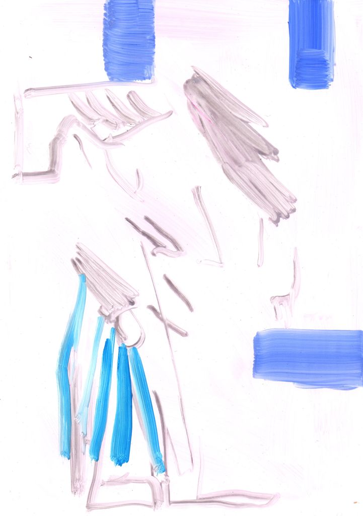 Between clones and scarecrows sketch paintings, gouache, marble dust and natural minerals on stone paper, 29,7 cm x 20, 6 cm, 2022
