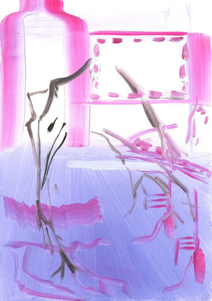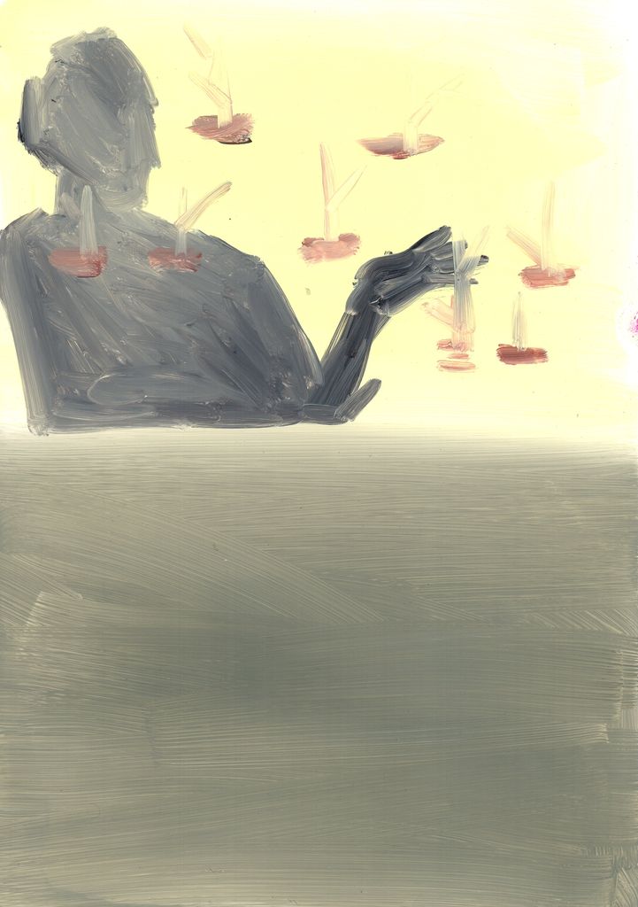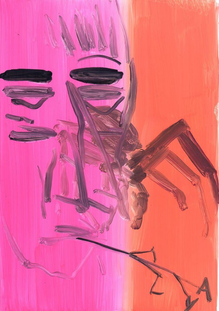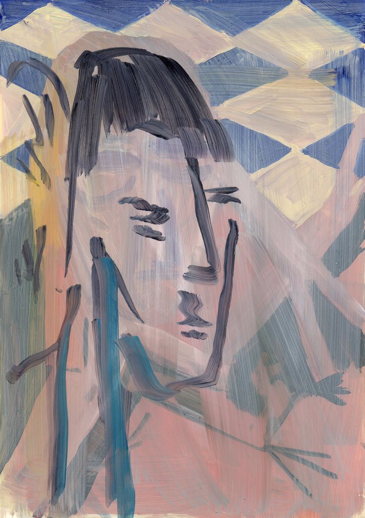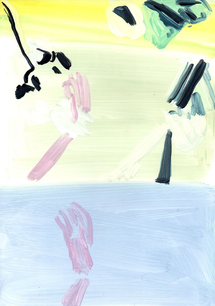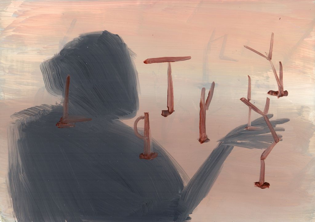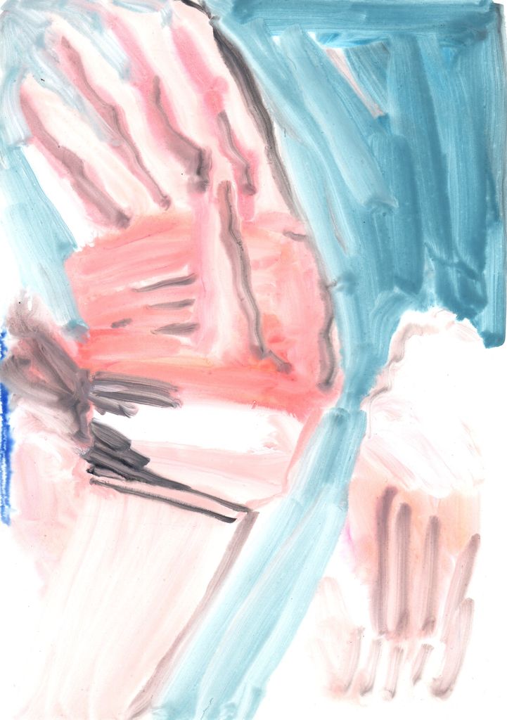 Between clones and scarecrows sketch paintings, gouache, marble dust and natural minerals on stone paper, 29,7 cm x 20, 6 cm, 2022